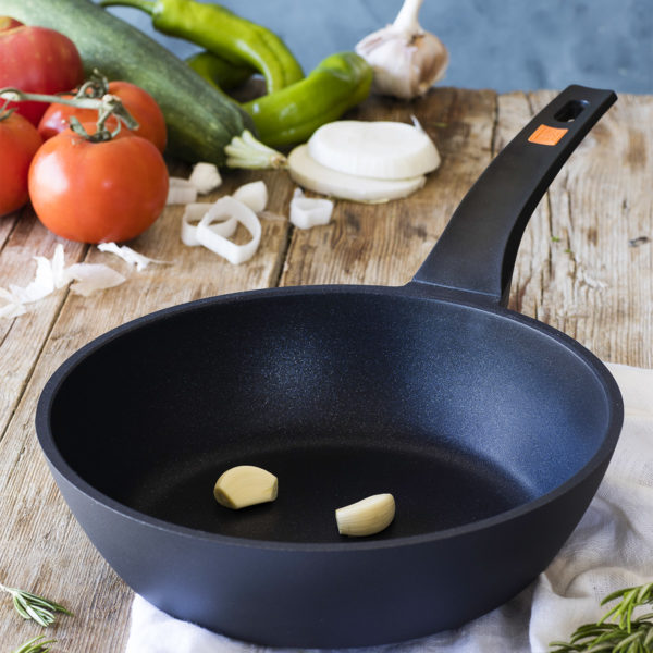 La sartén honda Efficient reúne la eficacia y la calidad para un uso de cocina intensiva con los mejores resultados. Es una sartén robusta y duradera gracias a su cuerpo fabricado en aluminio fundido y a la calidad de su antiadherente Platinum Plus libre de PFOA.